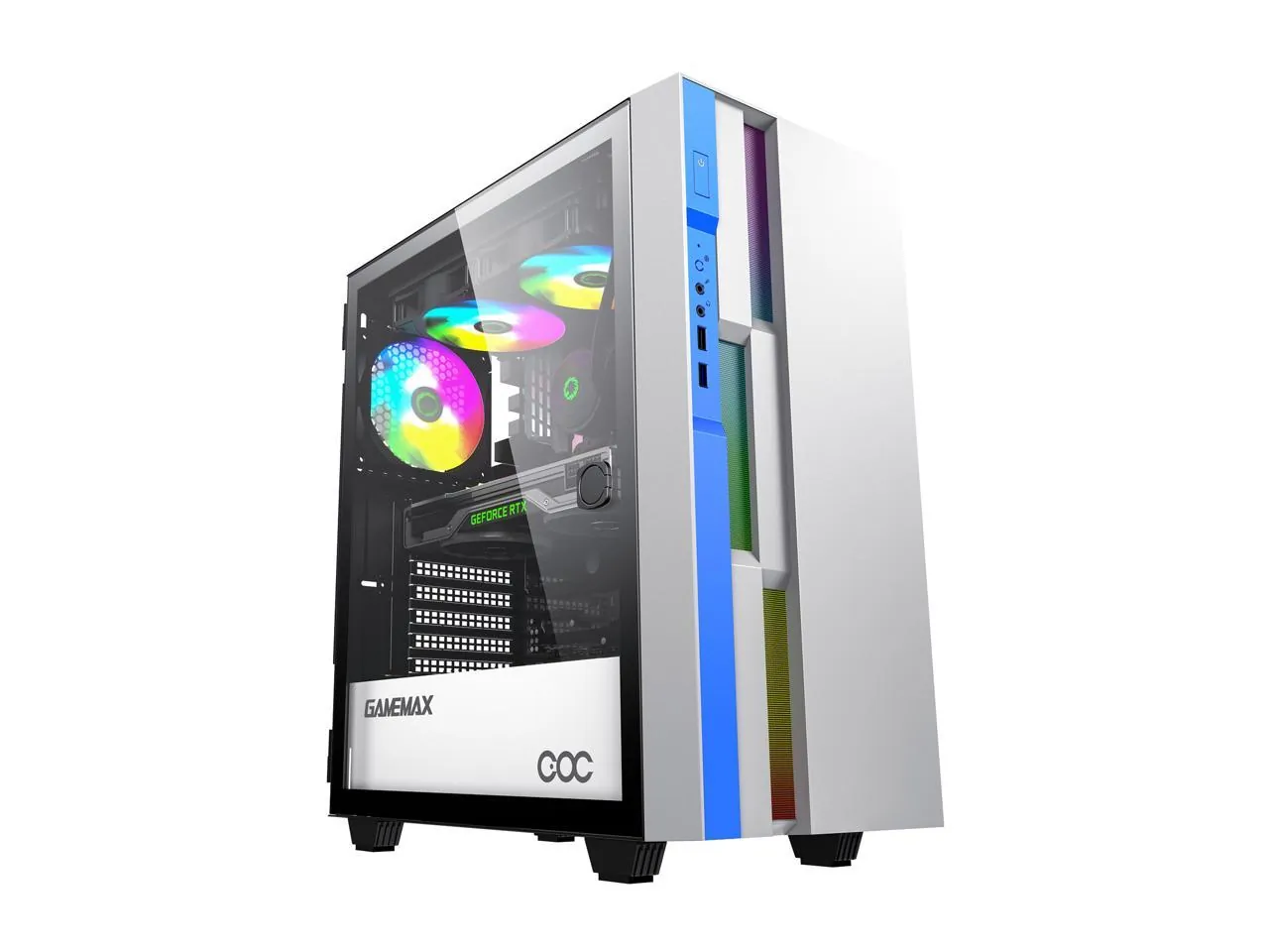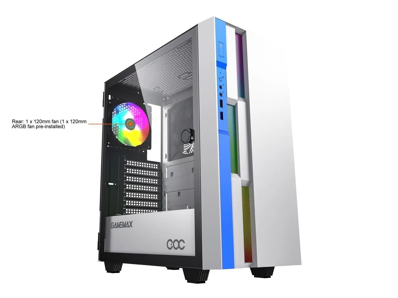 The GAMEMAX Brufen C3 WB is a stylish mid tower computer case designed for gamers and PC enthusiasts. With a sleek white steel finish and tempered glass side panel, it showcases your internal components while providing adequate cooling and airflow.