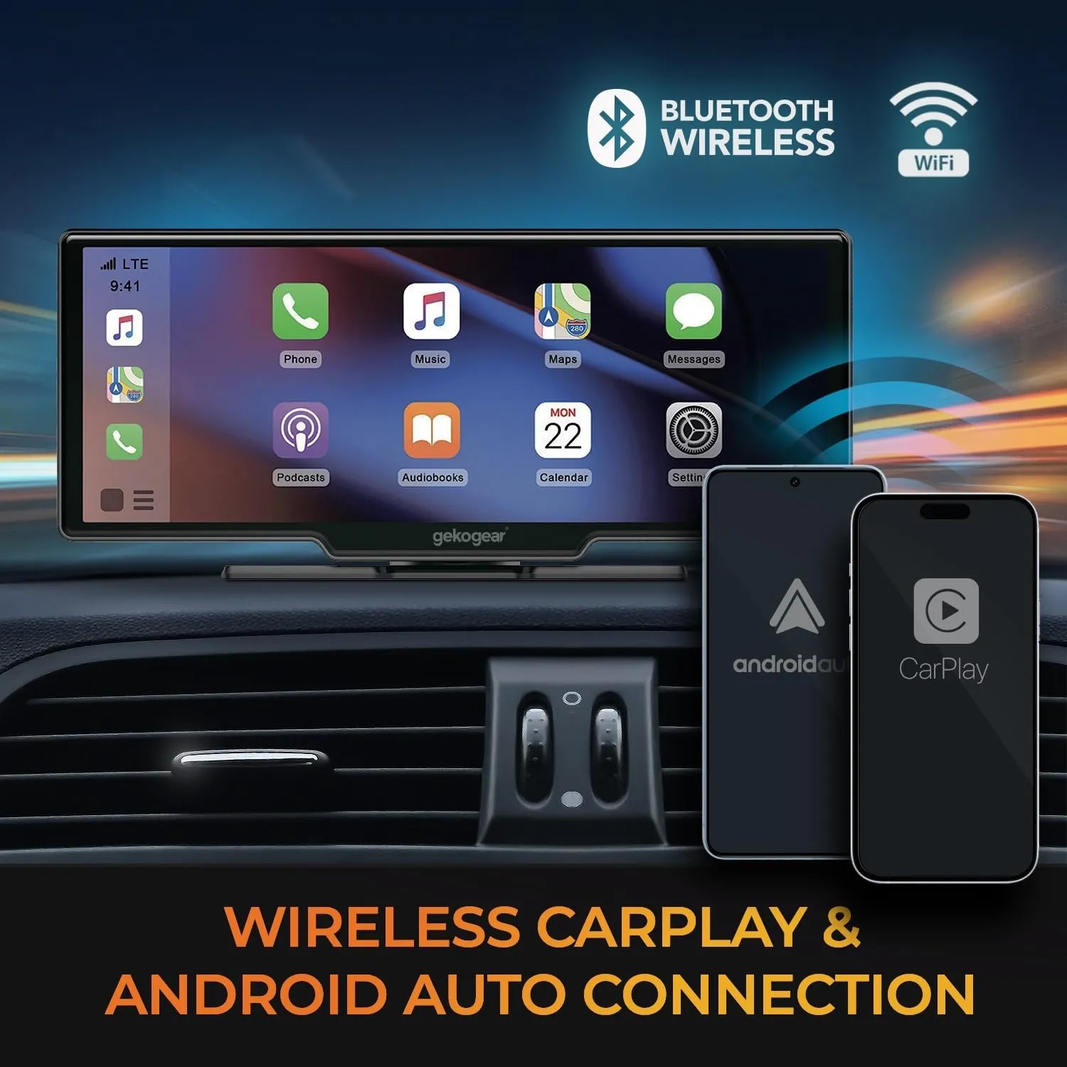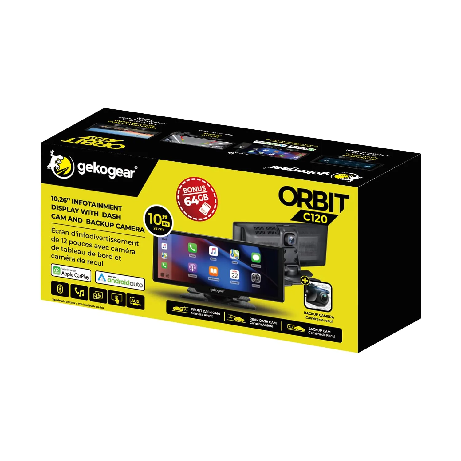 Adesso ORBITC120 Gekogear Orbit C120 10.26in Portable Infotainment Display For Apple Carplay Andr