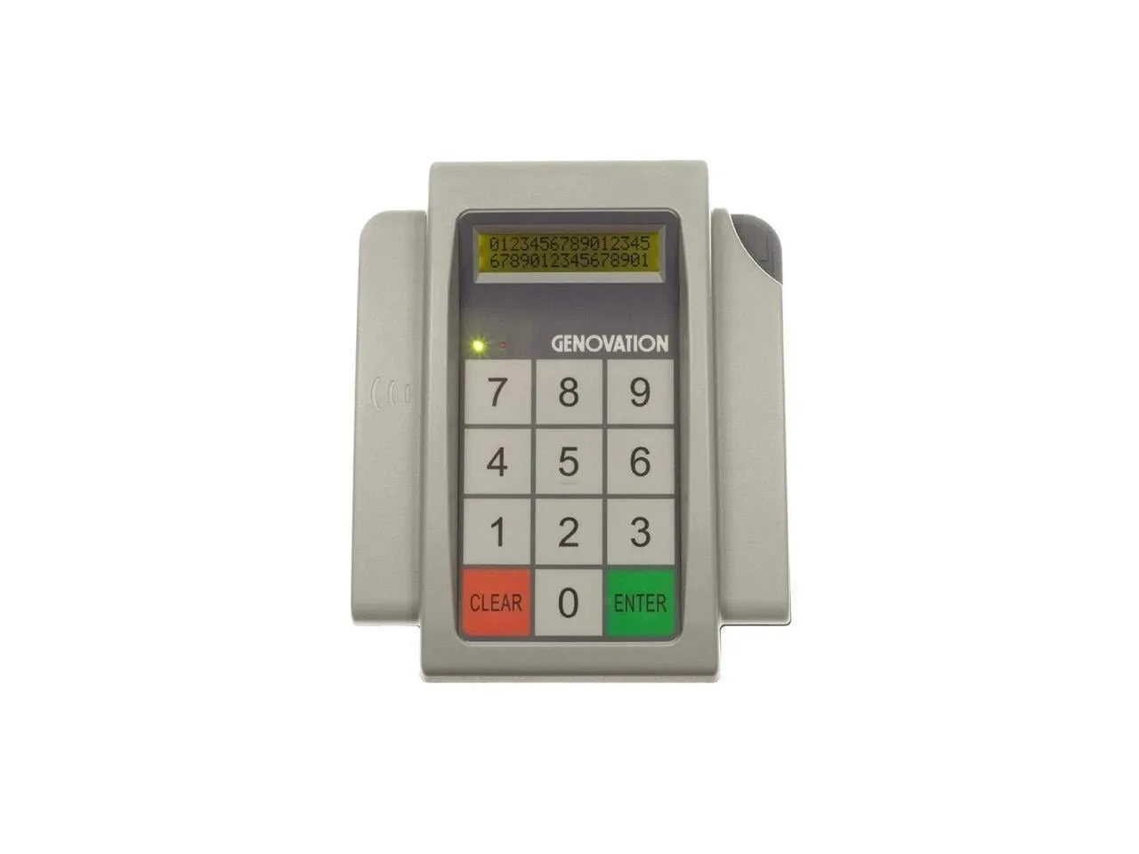The Genovation Mini Term is a compact 12-key terminal equipped with a clear 2-line LCD display. It connects via USB and is complemented by a front beam scanner, making it ideal for various data entry applications.