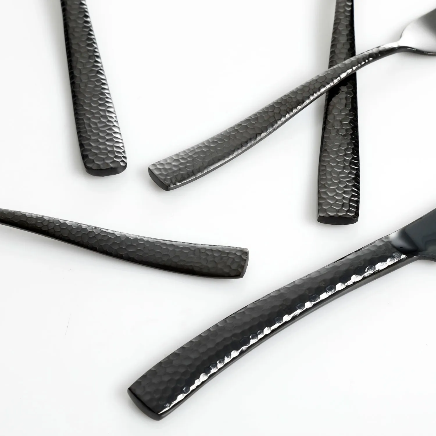 The Gibson Elite Stonehenge 20-Piece Flatware Set in Black is perfect for everyday dining. It features a contemporary all-black design complemented by an elegant, intricately detailed handle, adding a touch of sophistication to your table setting. This versatile set is designed to blend seamlessly with any decor, making it a necessary addition to your kitchen essentials.