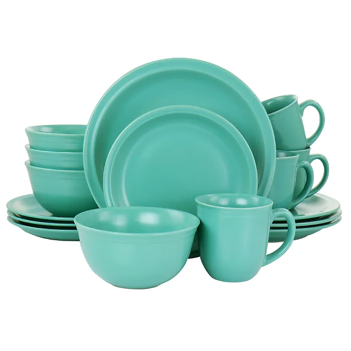 With a unique glossed matte finish and a stunning bluish-green tone, this dinnerware set will beautifully complement your home decor. It includes four dinner plates, four dessert plates, four bowls, and four mugs, making it ideal for four complete place settings.