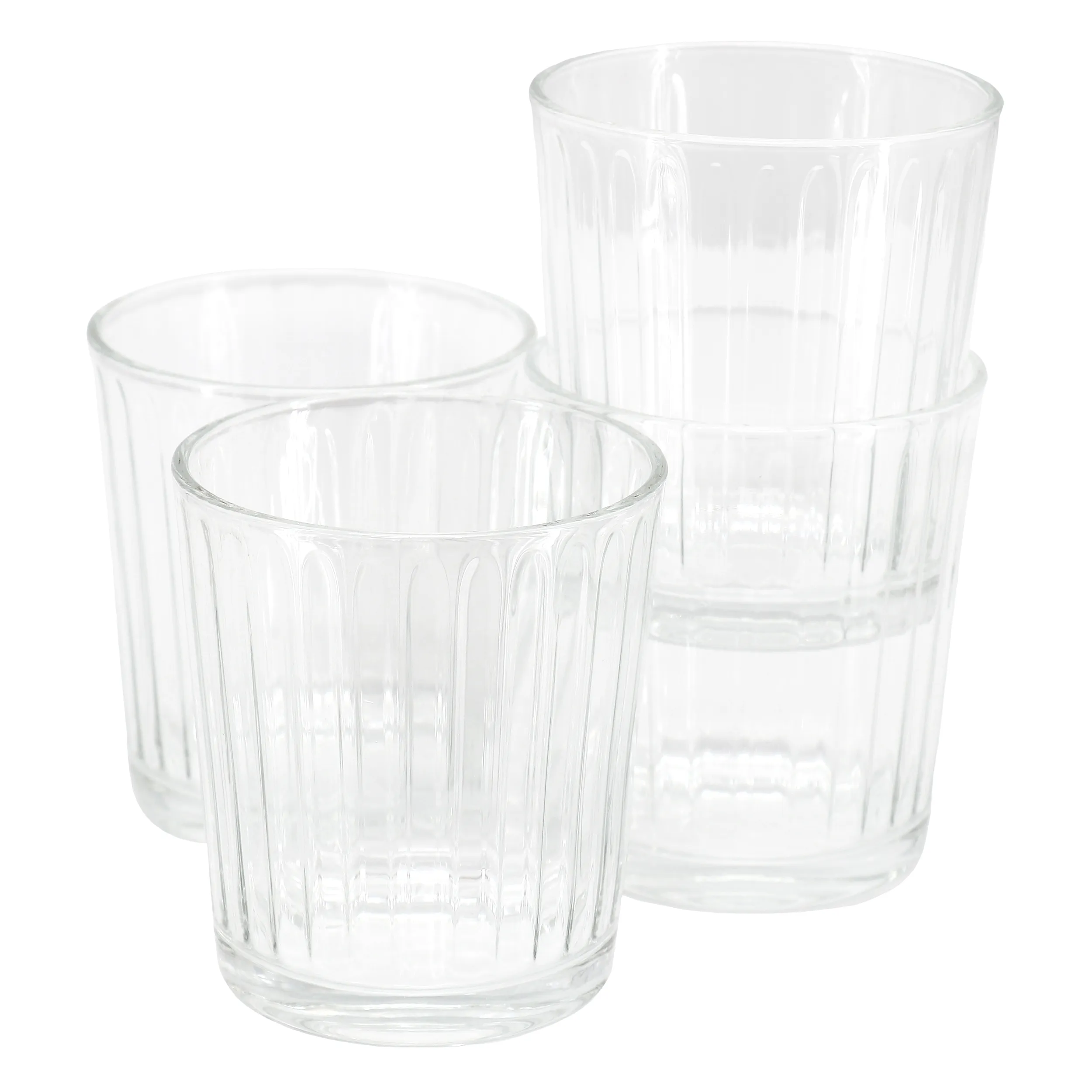 The Gibson Home Moonstone Set of 4 Elegant Glasses is a stunning addition to your tableware collection. Crafted from high-quality glass, these double old-fashioned glasses feature a delicate embossed design that enhances your drinking experience. Perfect for serving any beverage, whether it's a classic cocktail or a refreshing iced tea, these glasses are sure to impress your guests.