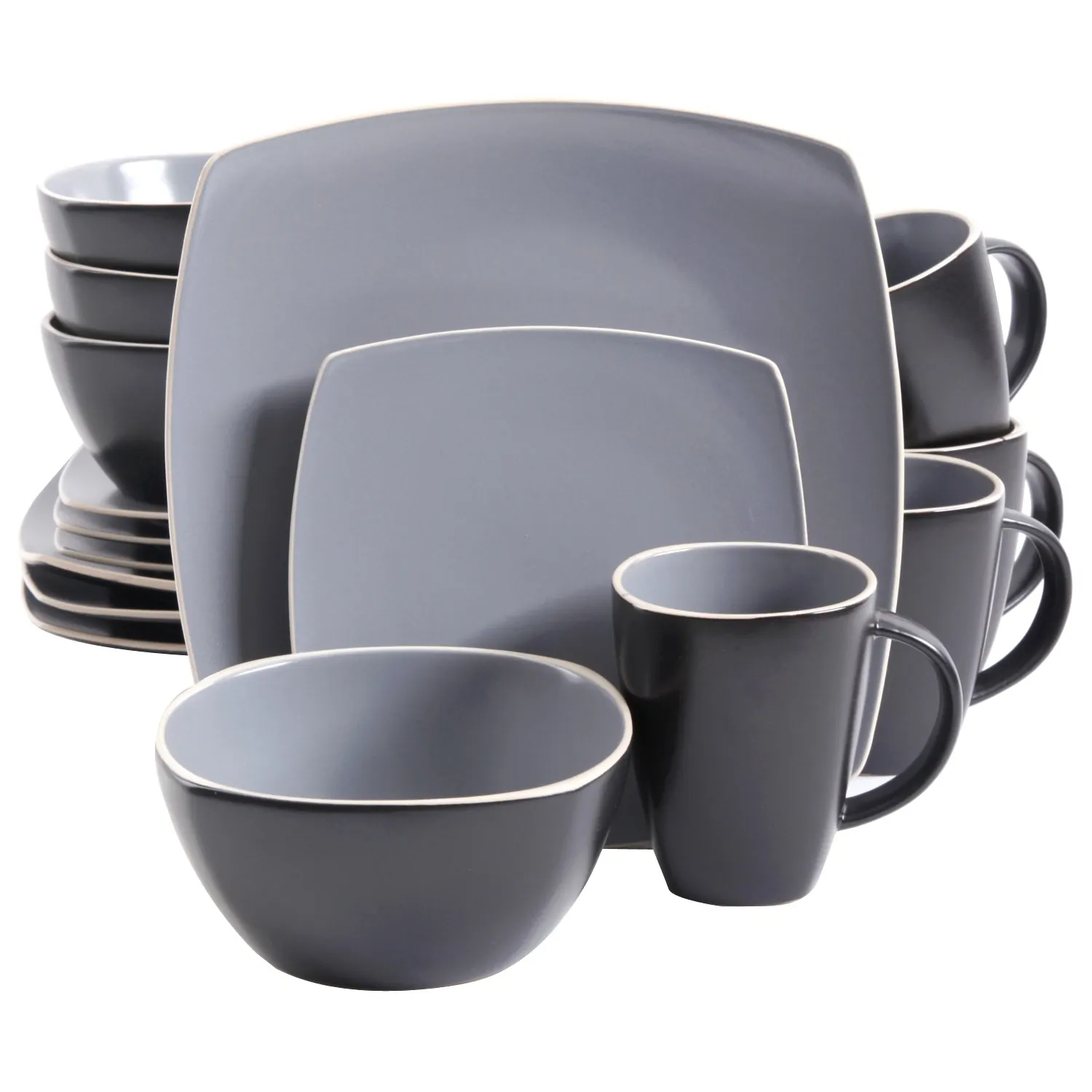 Gibson 94851.16 Home Soho Lounge 16 Piece Soft Square Stoneware Dinnerware Set In Grey Matte