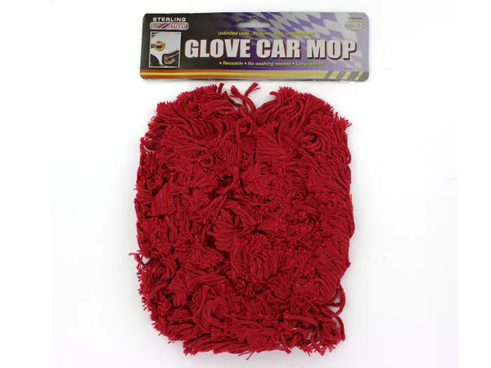 Great for home, auto or workplace, this Glove Car Mop features a red rug yarn surface on one side and a black nylon edged durable plastic hand pocket on the other side, making this the perfect tool for detailing cars. It is reusable and long lasting. Pocket fits most hand sizes. Measures approximately 9" x 8.25" x 0.5" with a pocket opening of 5.5". Comes packaged in a poly bag with a header card.