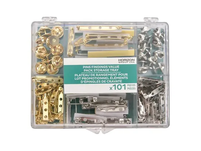 This Gold and Silver Pin Findings Value Pack is perfect for beginners eager to create beautiful pins. It includes 101 assorted pieces, providing all the essentials you need to get started. The findings come neatly packaged in a durable acrylic case, ensuring easy storage and organization.
