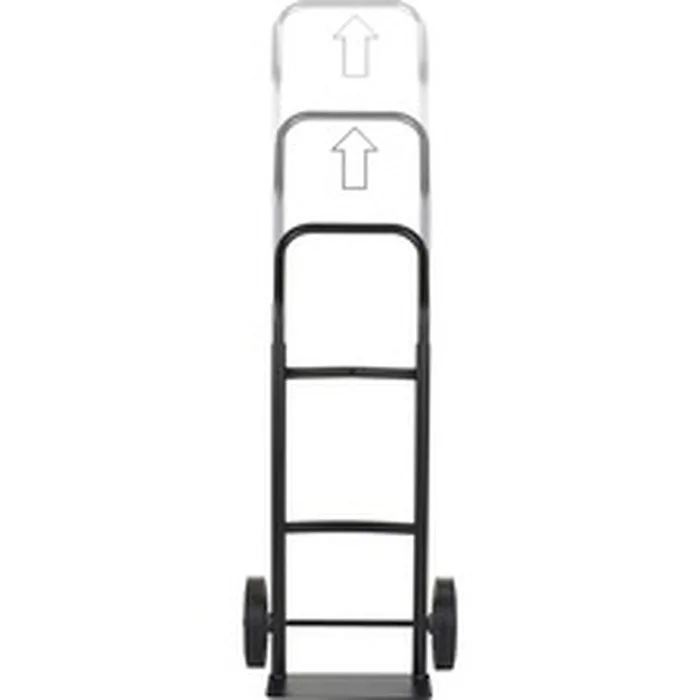 Hand truck features an expandable handle that adjusts to three different heights with just a push of a button for easy control during any task. Rubber wheels do not require air and roll smoothly across floors for effortless mobility. Heavy-duty, robotically welded steel frame provides long-lasting performance. Heavy-gauge base plate and channel axle supports provide long product life. Hand truck is designed to support up to 600 lb.