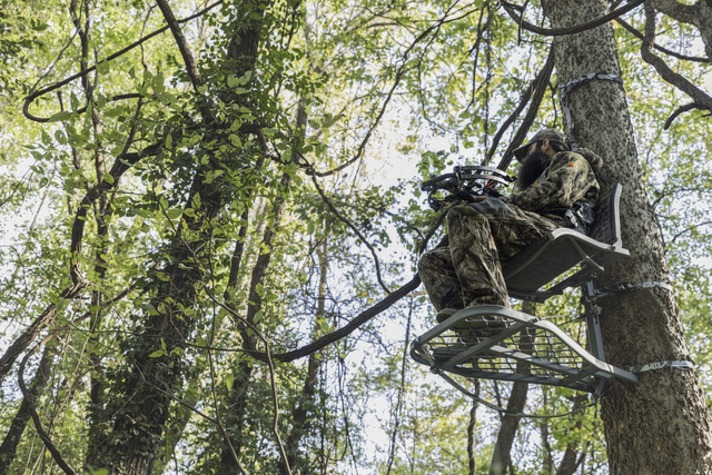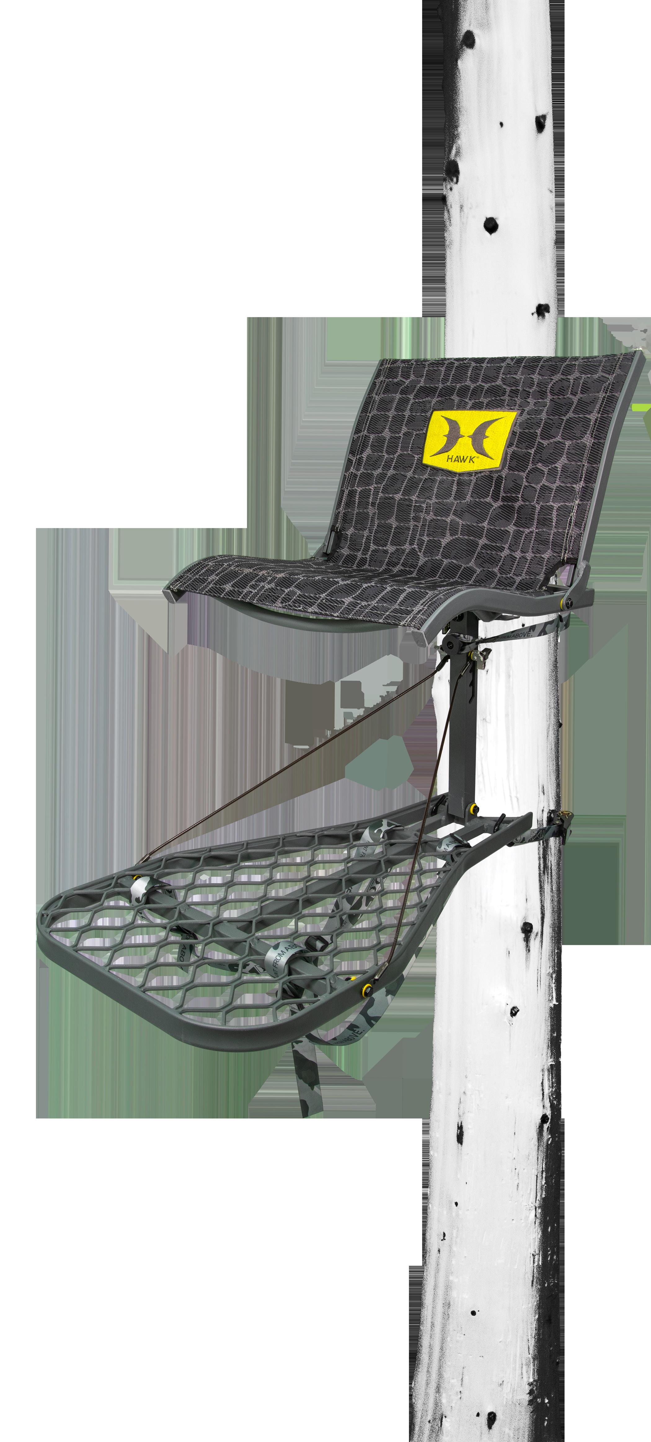 Solid & secure for climbing and ultra-thin while packing-Silent folding mesh seat for all-day comfort and easy sitting and standing configurations-4 levels of platform adjustment-Includes adjustable backpack straps for easy packing-Lounger seat ? contoured design, durable & weather-resistant-Weight: 15lb-Platform size: 20.5? x 29?-Weight rating: 300lb-Includes:Full body safety harness-Pair of adjustable backpack straps-2 ratchet tree straps