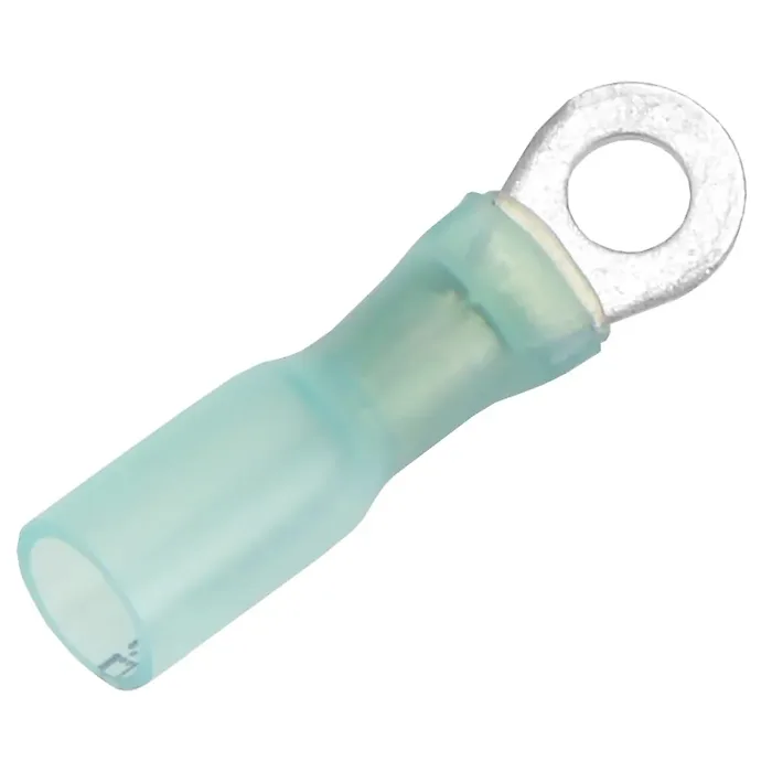 These high-quality heat shrink ring terminals provide a secure and reliable connection for your electrical wiring needs. Designed for use with 16-14 AWG wires, they fit snugly over a #8 stud, ensuring minimal risk of disconnection. Featuring durable tinned copper construction, these terminals are ideal for applications requiring both resilience and ease of installation.