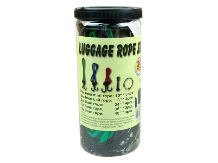 Securely strap down items for moving or securing your cargo with this durable 20-piece Stretch Cord Set. Each cord is constructed from heavy-duty elastic encased in tightly woven nylon, ensuring long-lasting strength and flexibility. The set features a variety of sizes to accommodate different needs: