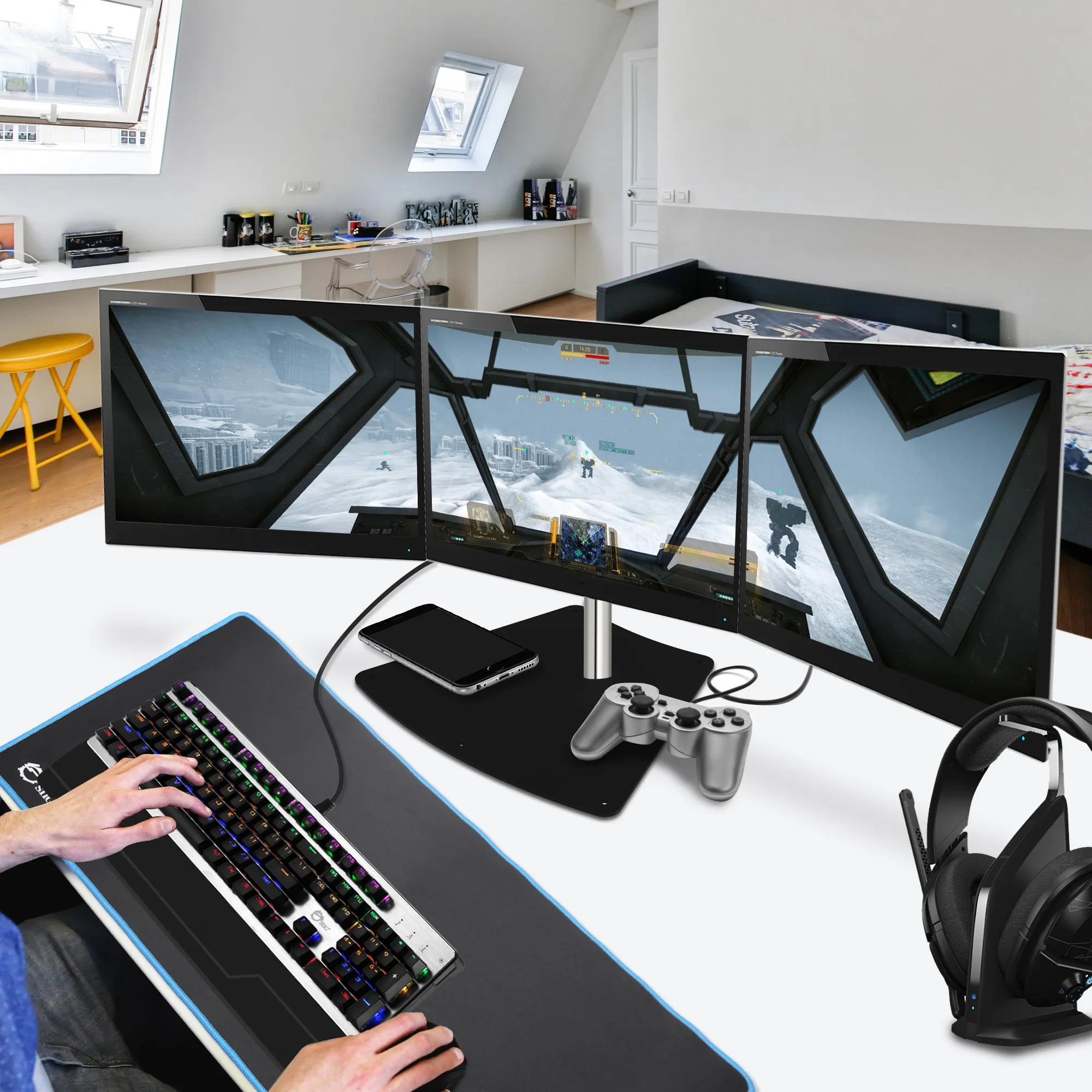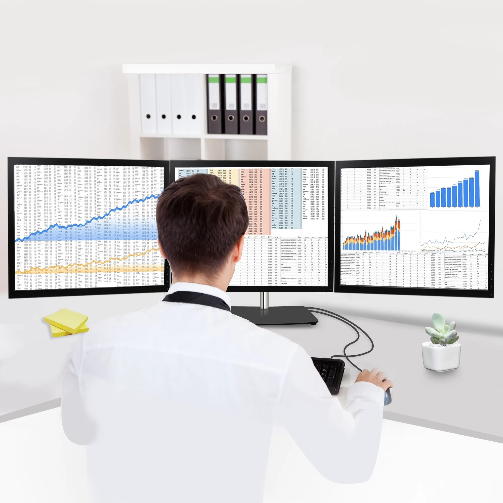 Easy-Adjust Triple Monitor Desk Stand - 13" to 27"