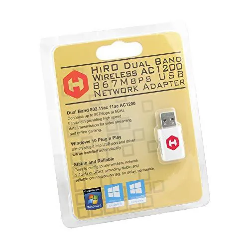 Experience high-speed wireless connectivity with the Hiro Network H50354 AC1200 Dual-Band WiFi Adapter. This adapter supports both 2.4GHz and 5GHz bands, delivering speeds of up to 867Mbps on the 5GHz band, making it perfect for streaming, gaming, and browsing.
