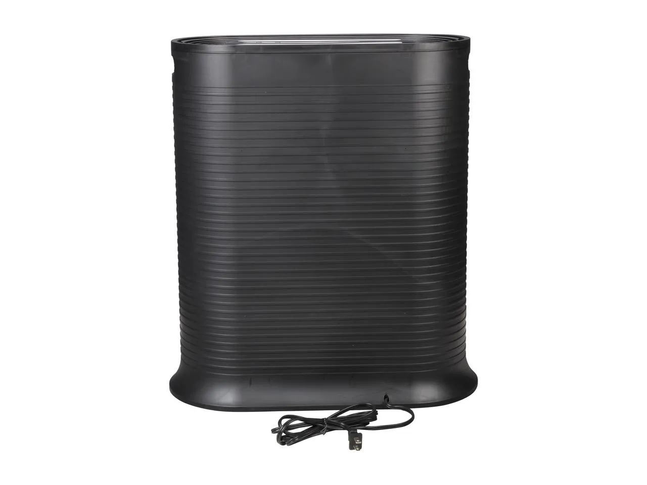Whole-room air purifier with electronic controls features a True HEPA filter that quietly captures up to 99.97 percent of microscopic allergens in extra-large rooms. An odor-reducing pre-filter works with the True HEPA filter to capture and remove odors, VOCs, allergens and germs. Three air-cleaning levels plus a Turbo Clean setting offer fast, complete control to accommodate your personal preference. Shutoff timer automatically turns off the purifier after 2, 4 or 8 hours for convenient operation when you're busy. Plus, electronic filter replacement reminders tells you when a new filter is required to ensure you're purifier is running efficiently at all times. True HEPA air purifier is designed for use in rooms up to 465 square feet.