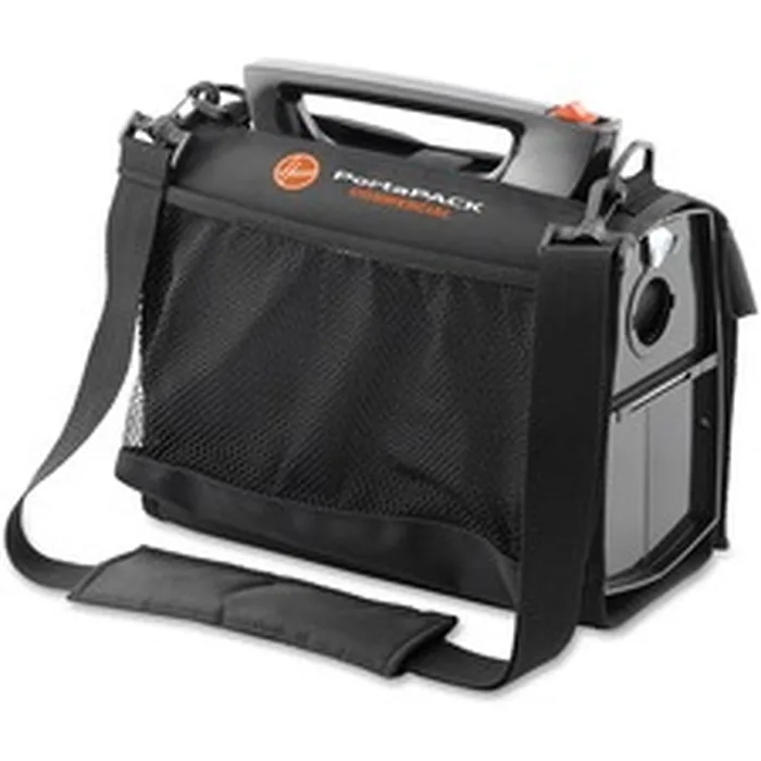Carrying bag offers a productive way to travel with your Hoover Portapower vacuum cleaner (sold separately). Removable shoulder strap features a soft padding to prevent straining your shoulder during extended use. Top opening allows your vacuum's handle to come through to easily access the power switch. Mesh side pocket offers a convenient location to store small accessories while allowing quick access.