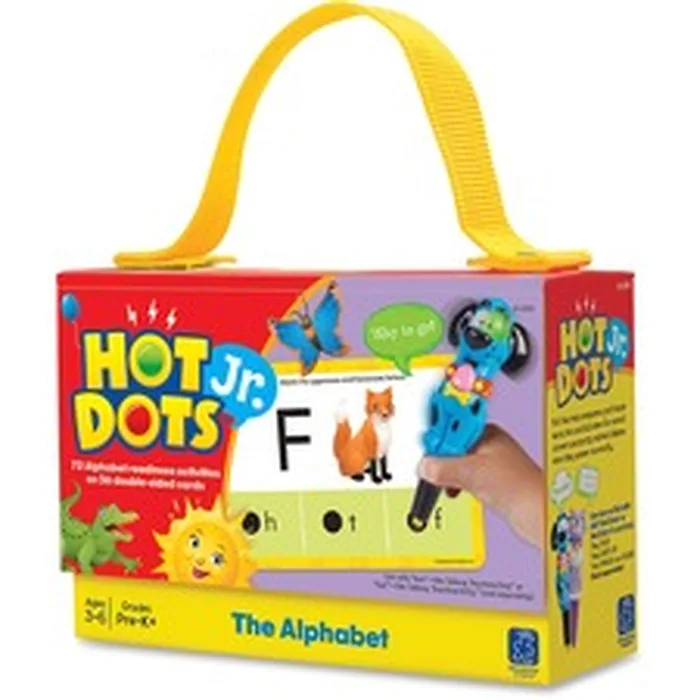 Hot Dot Jr. cards are designed for Hot Dots talking dog pen (sold separately). Cards provide a fun way for children to interactively learn the alphabet. To use, simply press the tip of the pen down on the cards to answer. Cards are recommended for children ages 3 to 6.