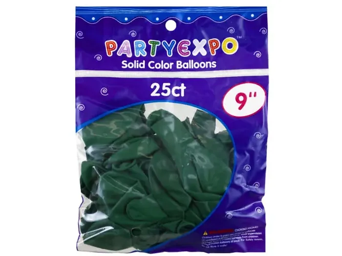 Brighten your events with our Hunter Green 9 Inch Balloons, available in a convenient 25 count pack. Perfect for parties, weddings, and special occasions, these balloons will instantly create a festive atmosphere. Combine them with other sizes and colors to craft a unique balloon display. Each pack is neatly packed in a hanging poly bag for easy storage and display.