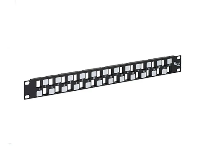 - 24 Port EZ Blank Patch Panel 1 RMS- Rack mounted reinforced steel panel with pre-numbered ports- Flush mount design adds stability by allowing a rigid fit and a neat appearance- Designed to support the distribution of voice, data, audio, video and fiber optic applications- Ideal for use in high density applications with more connectivity in less space- Designed to fit all standard 19r racks and cabinets- 1 rack mount space (RMS)- Accommodates a wide variety of easy to snap-in modules, providing configuration flexibility- UL listed