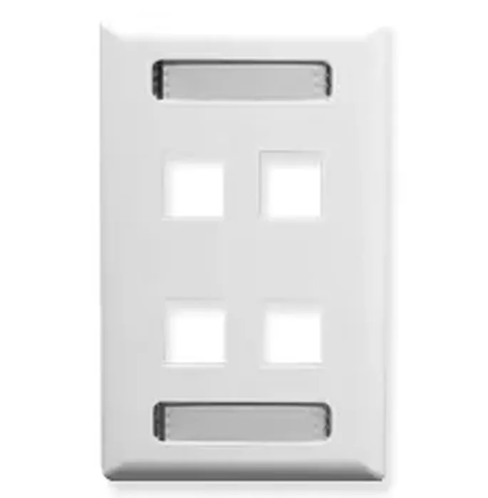 - White Single Gang 4 Port Station ID Keystone Wall Plate- Rugged and durable construction