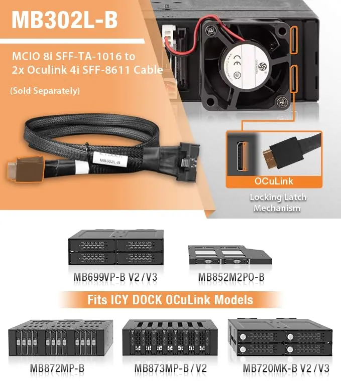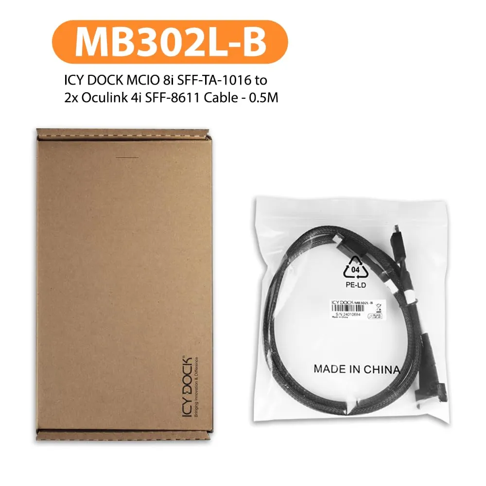 The ICY DOCK MCIO 8I SFF-TA-1016 is a high-performance cable designed for connecting two OCULINK 4I devices via a SFF-8611 interface. This cable ensures optimal data transfer rates and reliable connectivity for efficient data management in your systems.