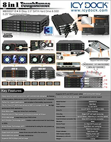 Icy MB998SP-B Storage Tougharmor 8x2.5inch Sata 7mm Drive Hot Swap Mobile Rack Retail