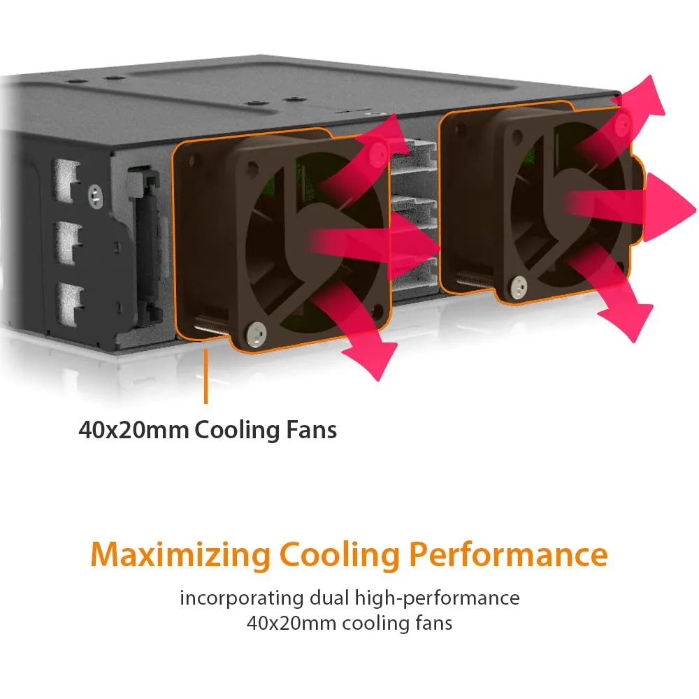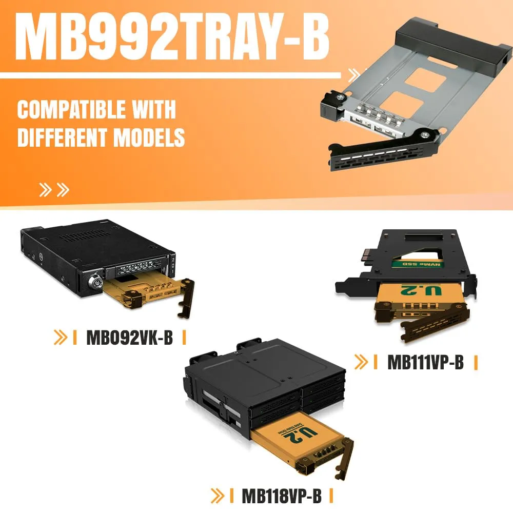 The ICY Dock ToughArmor RD MB118VP-B is a robust mobile rack designed for 6 x U.2/U.3 NVMe SSDs, offering high-speed PCIe 4.0 performance. It fits into a standard 5.25-inch bay and provides efficient cooling and easy access to your drives, making it ideal for data-intensive applications.