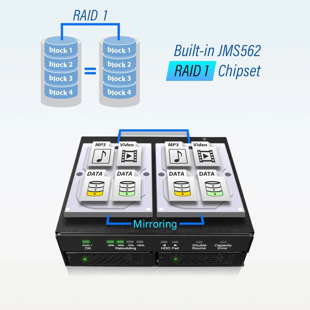 With RAID 1 functionality, your data is mirrored across two drives, providing an extra layer of protection against data loss. This device is perfect for professionals and hobbyists who demand reliability and performance in their storage solutions.