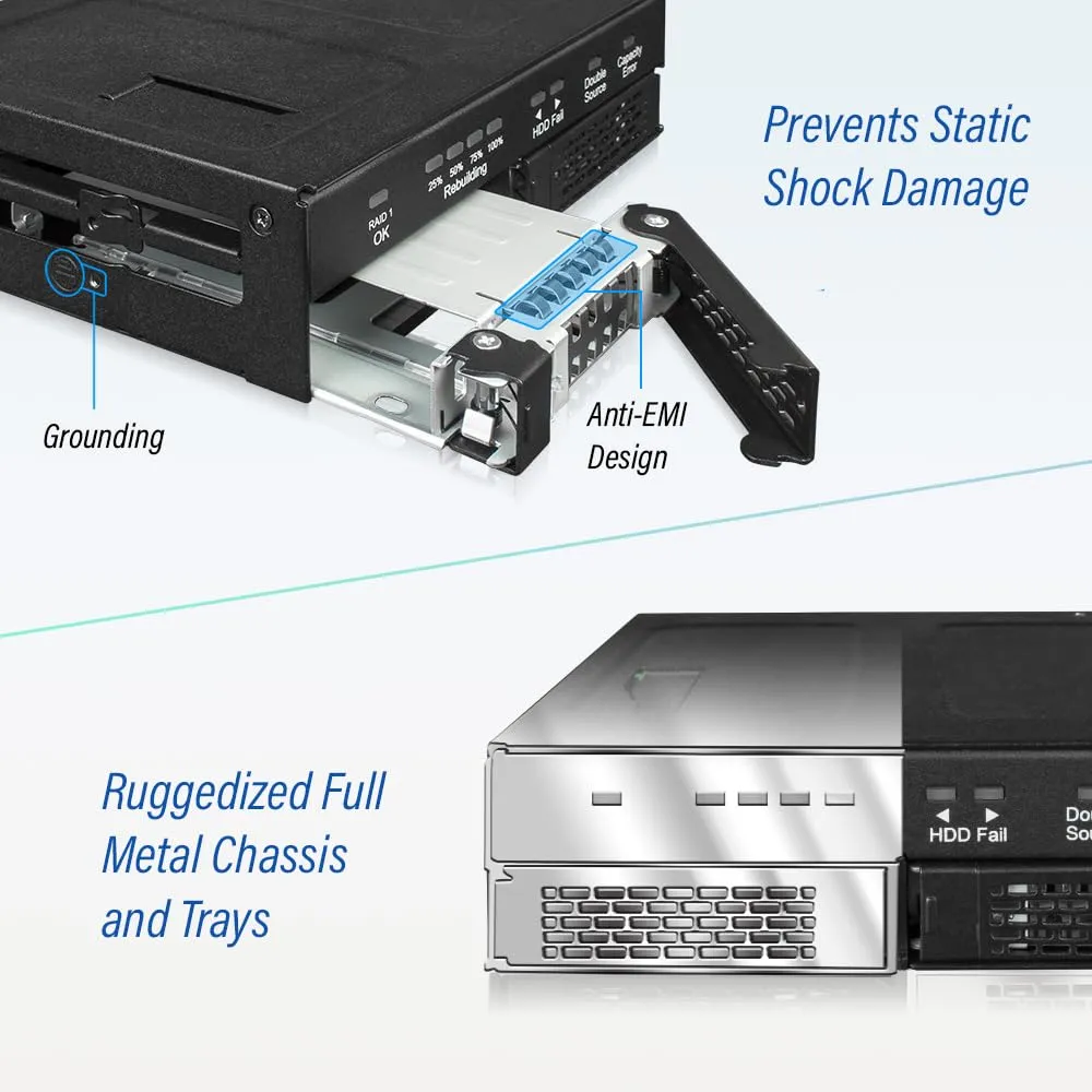 - Sturdy metal housing to protect drives during use
