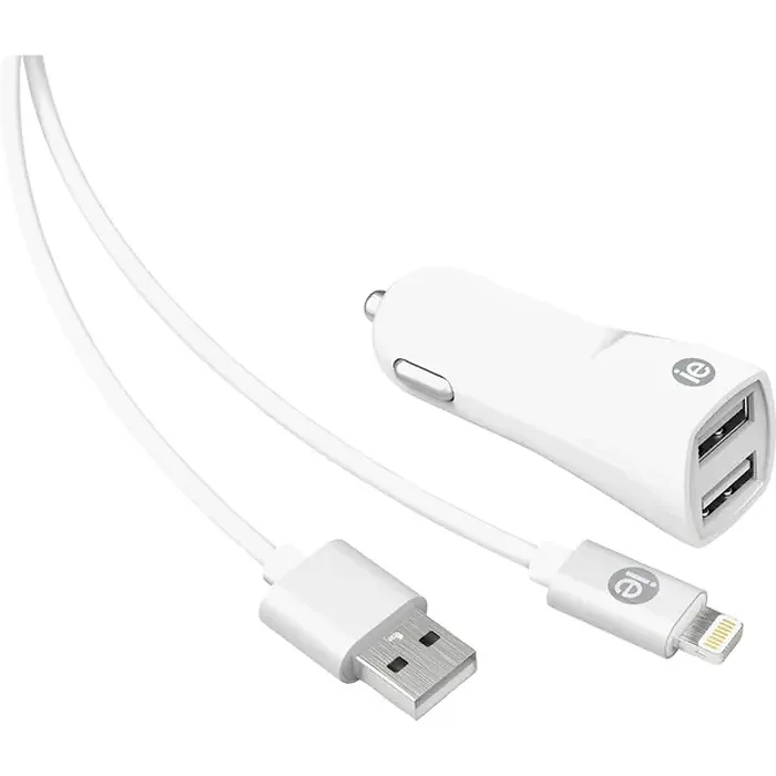 iEssentials IEN-PCL-22A 2.4-Amp Dual-USB Car Charger with USB-A Lightning Cable, 4 Ft.