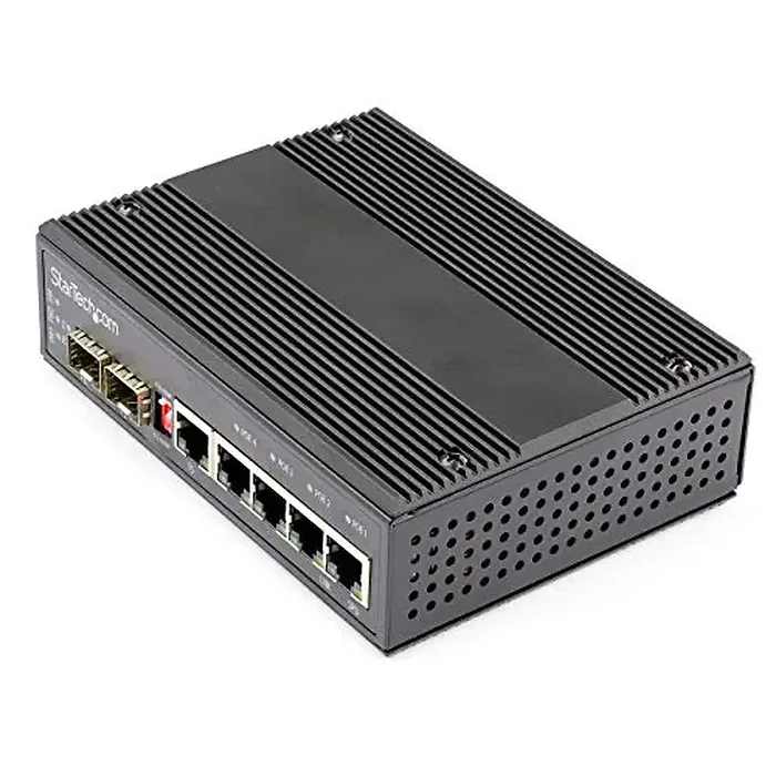 StarTech.com Industrial 6 Port Gigabit Ethernet Switch w/4 PoE RJ45 +2 SFP Slots 30W 802.3at PoE+ 12-48VDC 10/100/1000 Mbps -40C to 75C