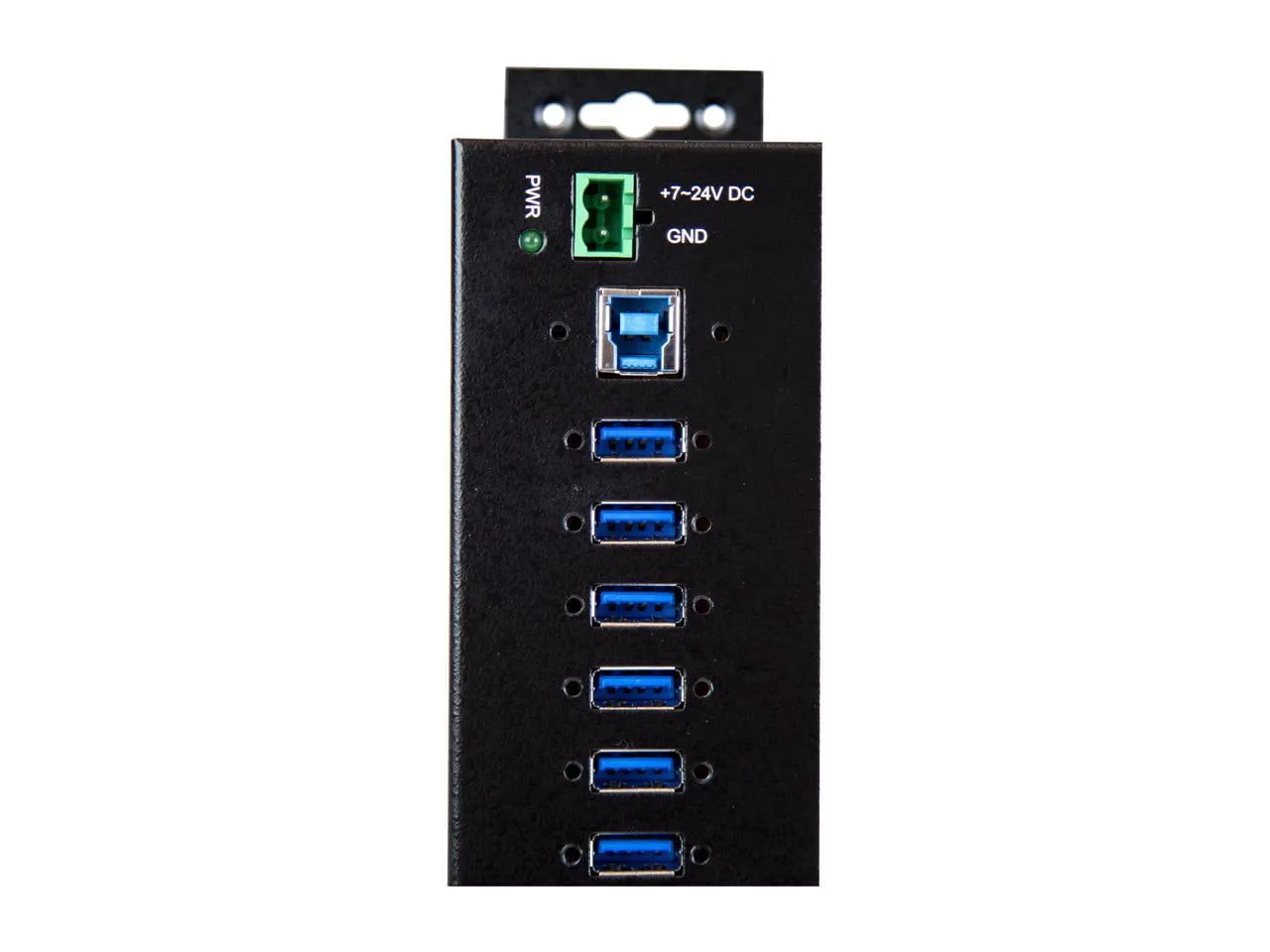 This industrial USB hub delivers reliable performance with a metal, heavy-duty housing. It supports wide-range 7-24V DC terminal block input, giving you the flexibility to power the hub as required, based on your own power input capabilities.