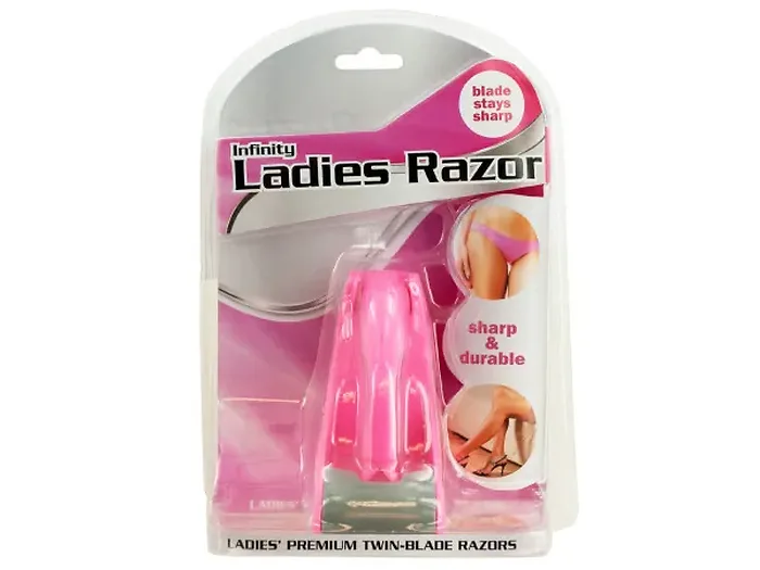 Get a smooth shave and save money with this Infinity Ladies Razor, featuring a sharp, durable razor that stays "new blade" sharp and will last longer than other razors. Includes: ergonomic razor handle, infinity blade cartridge and stand. Comes packaged in a blister pack.