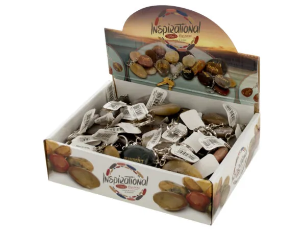 Bulk BH565 Inspirational Spanish Stones Keychains Display Set
