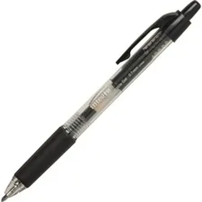 Retractable Gel Ink Pen delivers a smooth and effortless writing experience with its permanent, water-resistant gel ink. Design features a comfortable rubber grip, tough metal ball tip (medium point) and clear barrel. Gel pen is nonrefillable.