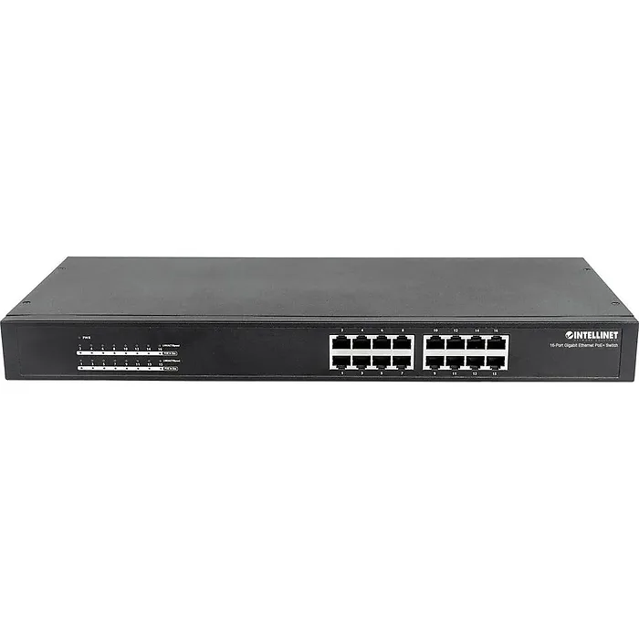 - 16 Port Gigabit Ethernet PoE Rackmount Switch- Designed to pass both data and electrical power to a number of PoE compatible devices (including wireless access points, VoIP phones, IP cameras) via standard Cat5e or Cat6 network cables- Supports IEEE 802.3at protocol and is designed to inject up to 30 watts of power per port (total PoE budget is 220 watts)- 10/100/1000 auto-sensing ports automatically detect optimal network speeds- 802.3at/af-compliant RJ45 PoE/PoE+ output ports- Store and forward switching architecture- Supports up to 8102 MAC address entries- 256 kBytes buffer memory- Internal fan delivers quiet and efficient cooling- Includes 19" rackmount brackets- Total Ports: 16- PoE Ports: 16 RJ45 PoE/PoE+- Backplane speed: 32 Gbps- Protocols: 802.3, 802.3ab, 802.3af, 802.3at, 802.3u, 802.3x