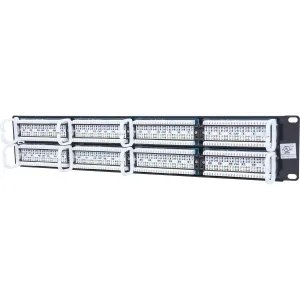 Improve the performance and efficiency of your computer network with this Intellinet 513579 CAT-5E Patch Panel. The item includes solid and reliable terminations for copper cabling featuring a minimum of 3mm, 50 micro-inch gold-plated jack contacts. It is ideal for Ethernet, Fast Ethernet and Gigabit Ethernet applications. This item can connect 48 RJ-45 ports to a network. It supports 22-26 gauge stranded and solid wire and is compatible with both 110 and Krone punch-down tools to ensure convenient use. This Ethernet patch panel will make an ideal addition to any set of networking tools and accessories.