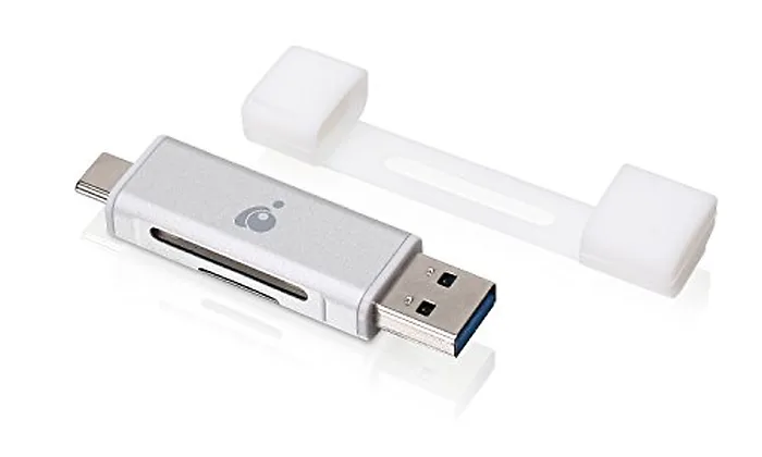 Constructed with premium aluminum, the IOGEAR USB-C Dual Card Reader & Writer seamlessly connects your mobile devices and computers.