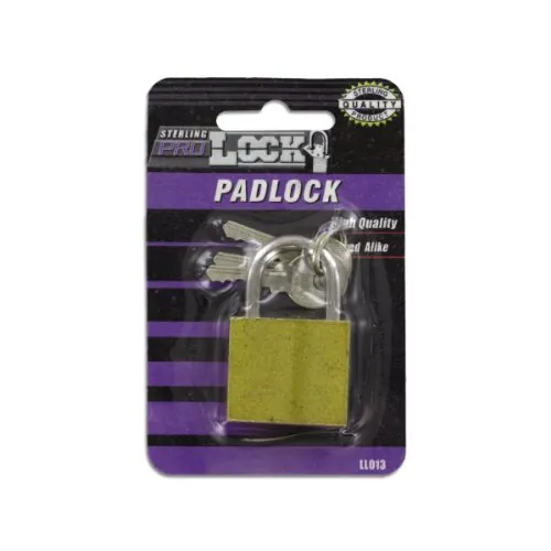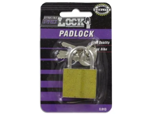 Perfect for lockers or toolboxes, this Iron Padlock comes with 2 keys which are keyed-alike. Lock is gold with a silver closure. Measures approximately 1 1/8" x 1 1/16" x 1/2". Comes packaged in a blister pack.