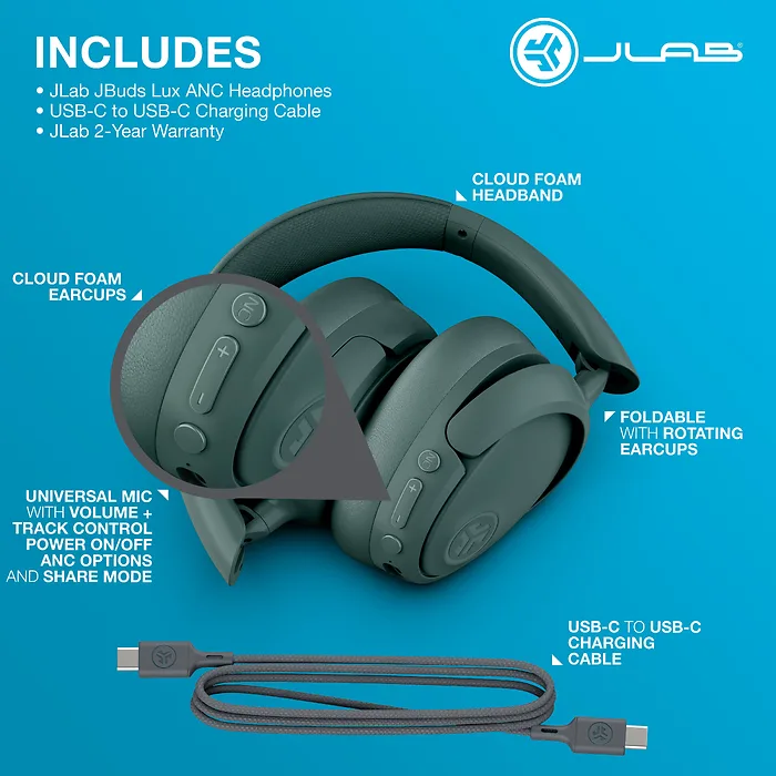 Jlab HBJLUXANCRSGE62 Jbuds Lux Anc Wireless Headphones With Active Noise Cancelling