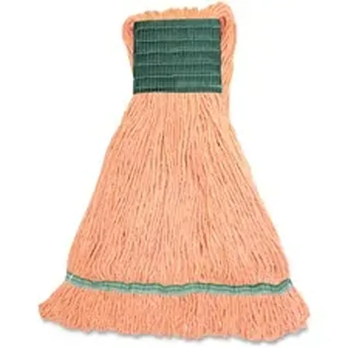 Medium-size mophead with a wide headband is ideal for general cleaning and disinfecting. Synthetic blend fibers (rayon and cotton) absorb six to seven times their weight. Mop offers a limited break-in period so you can start mopping sooner. Looped ends provide greater durability and launderability. Wide headband allows added launderability and use with all handle styles. 5" mesh headband with "S" zig-zag stitch pattern provides a more durable headband.