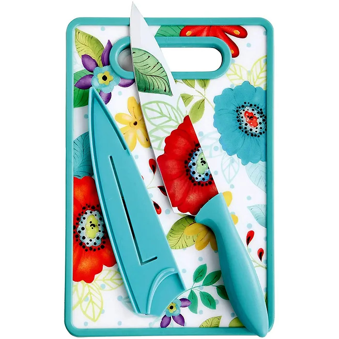 Studio 112065.03 Jordana 3piece Knife Set With Cutting Board Turquoise Floral