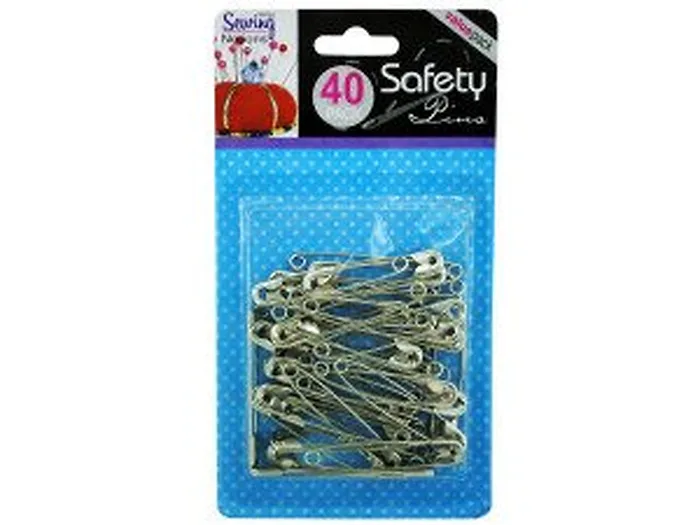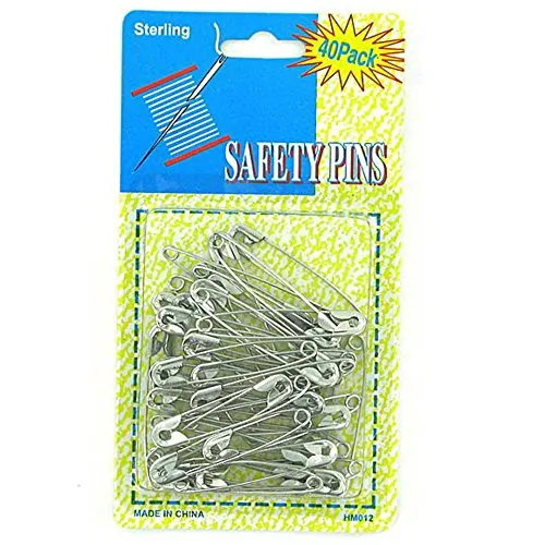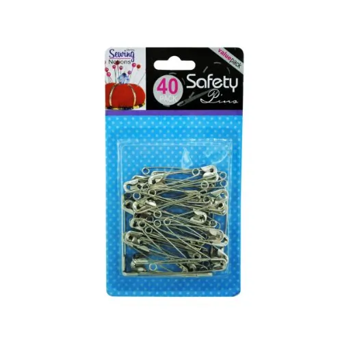 Perfect for thicker fabrics such as denim, burlap, terry cloth and corduroy, this 40-piece Jumbo Safety Pins Set features pins made with high quality metal for strength and durability. Each safety pin measures a little over 2". Comes packaged in a blister pack.