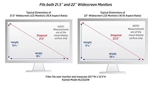 Kantek LCD22W Lcd Protective Filter Silver For 21.5lcd 22 Monitor Scratch Resistant Acrylic Antiglare 1 Pack