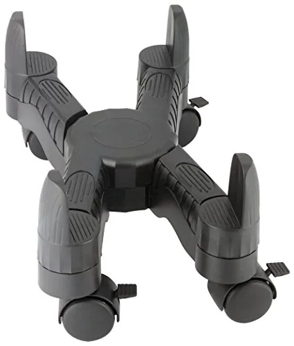 CPU stand is adjustable to accommodate of CPUs from 4" to 10" wide. Slim sleek design elevates a CPU 5" and supports up to 60 lb. CPU stand offers durable heavy-gauge construction and four locking swivel casters for stability.
