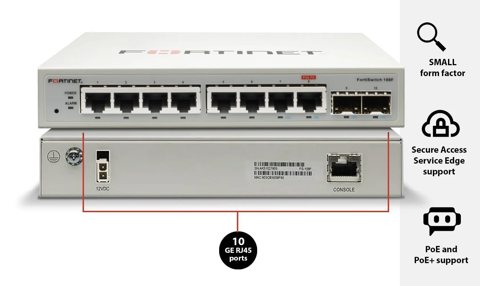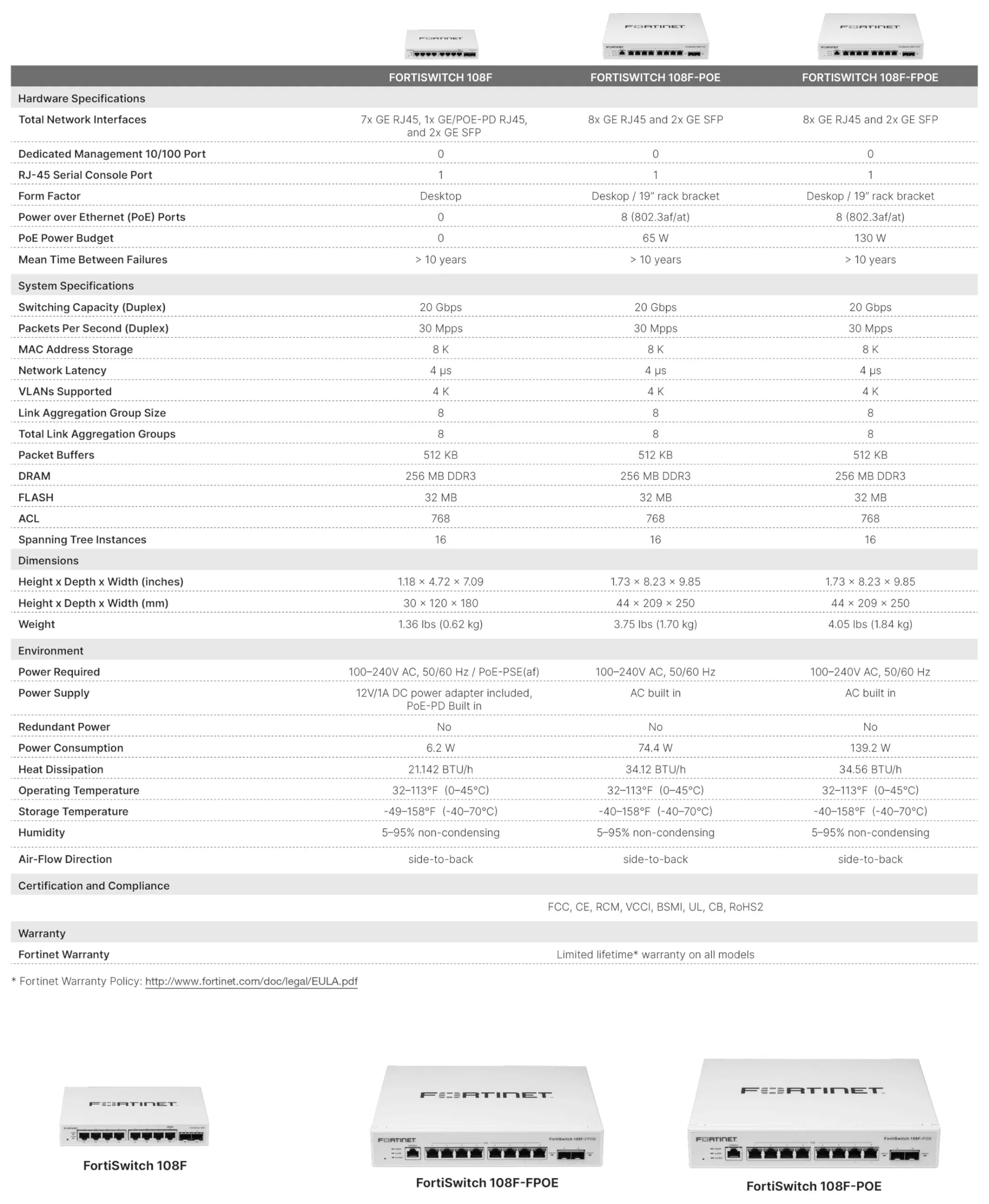 Fortinet FS-108F L2 Wwitch 8 X Ge Rj45 Pt 2 X Ge Sfp Fanles