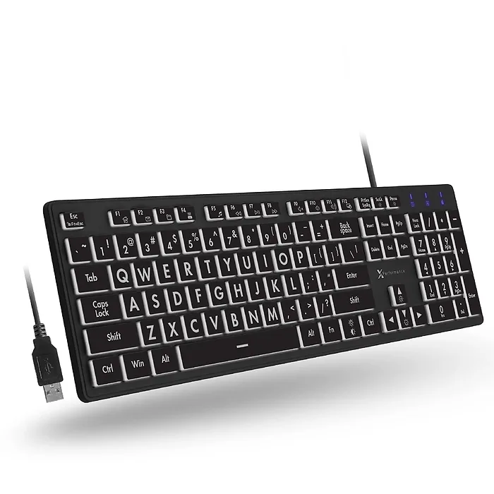 The Large Print Backlit USB Keyboard is designed for enhanced visibility and comfort. With its vibrant 7 color backlighting, this keyboard is perfect for both day and night use. The large print keys make it easy for anyone to read, ensuring a smooth typing experience. Plug and play functionality allows for quick connectivity with your PC.