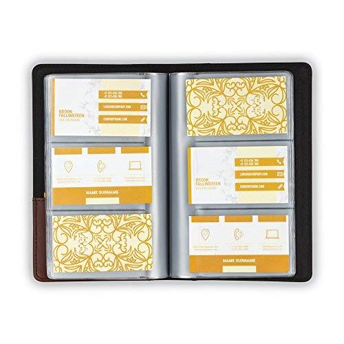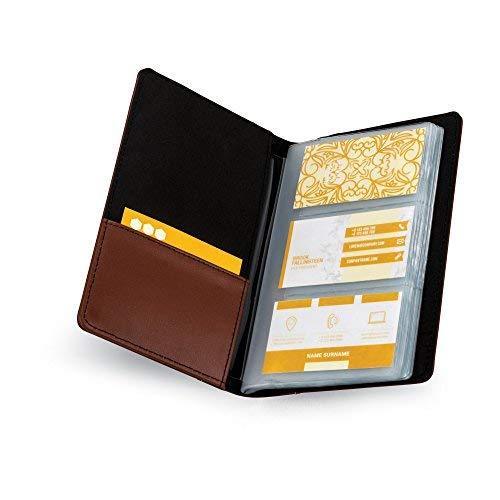 Designed for fashion forward professionals, this Contrast Stitch Leather Business Card Organizer has a beautiful light brown exterior made from superbly crafted bonded leather with contrast cream stitching. The spine accent of this business card holder book gives a sturdy and professional look and feel to it. This card holder is designed for style and functionality, making it a great choice for both men and women at a very affordable price. The card case has 20 different 3 high slightly textured plastic sleeves that are ideal for storing and organizing up to 120 individual business, credit cards, ID cards, gift cards, etc. These slightly textured pages provide reduced glare with contact clarity for easy view of information on the cards. A personal business card pocket is also featured inside the front cover of this book style business card holder. Easily store and organize the business cards of all your associates and clients, IDs or credit cards. Sort them alphabetically or according to their relevance or importance to your work. It is a perfect business card holder for seasoned professionals organizing their growing number of cards and for the recent college graduates looking forward to making a great first impression while just starting their collection.