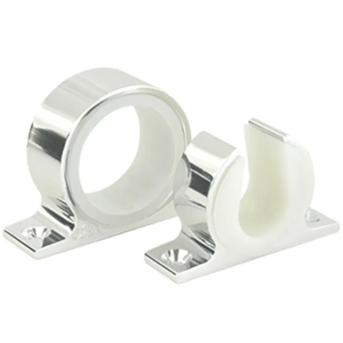 Simple and efficient rod storage. Constructed of Marine Grade Anodized Aluminum with a variety of Anodized Finishes. Rod Butt is inserted into Closed End of set. Vinyl insert protects the Rod Butt. Tip of rod is placed into Locking End of set and Nylon Locking Ring is rotated to lock it in. Will support the heaviest of rods. Can be mounted Horizontally, Vertically or Overhead.