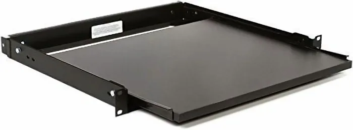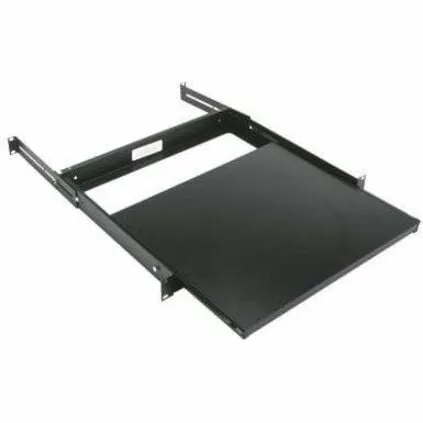 Filling just a single rackspace, SSL sliding shelf extends 11-3/8 on nylon rollers slides. A telescopic rear support mounts to any rack (rear rackrail required in steel racks). The shelf itself is made with an attractive black laminate material. NOTE: Fits in racks with a minimum 15-1/8 from front to rear rail.