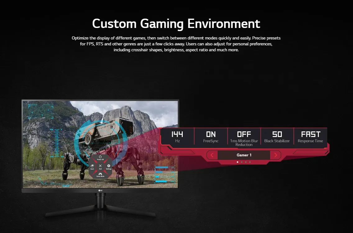 The LG 32GK650F-B is a high-performance 32-inch QHD gaming monitor designed for immersive gameplay. Featuring a stunning resolution of 2560x1440, it delivers crystal-clear images and a fast 144Hz refresh rate to ensure smooth motion during fast-paced action games. The 5ms response time minimizes motion blur, providing a competitive edge in gaming.