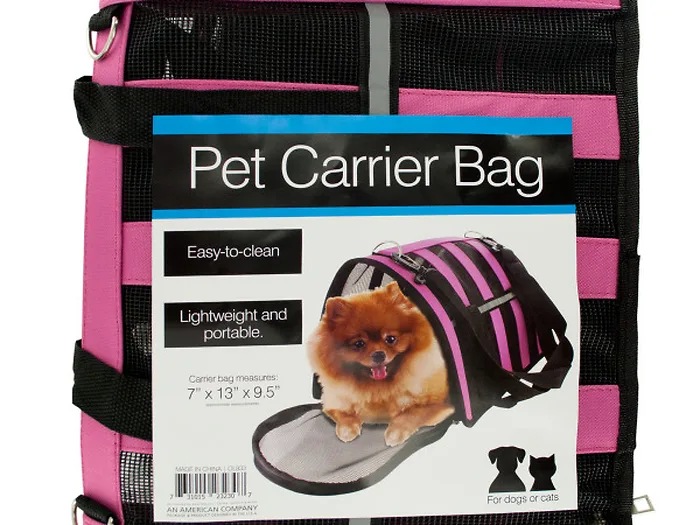 For easy portability, the carrier includes a padded top handle and a detachable, adjustable strap that lets you carry it in multiple ways. The carrier is easy to clean and comes in a variety of assorted colors. Measuring approximately 7" x 13" x 9.5", it's the perfect size for your furry friend.