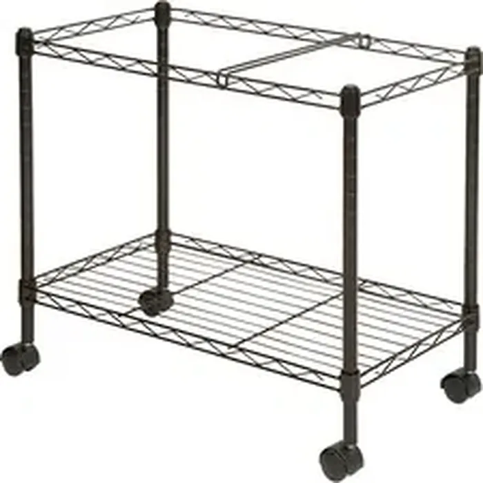 Wire file cart offers one tier of mobile filing and a storage shelf to organize projects anywhere in your office. Letter-size folders can be placed in two rows for front-to-back filing or one lengthwise row on the file frame. The bottom shelf can be used for storage or transporting essential project supplies. File frame accommodates both letter-size and legal-size hanging file folders. Wire cart is made of sturdy steel construction with a scratch-resistant, powder-coat finish. Two of the four swivel casters lock so you can secure the cart by your desk or file cabinet with no concern of it rolling away.